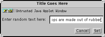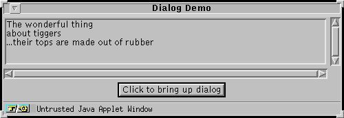 By using the DialogWindow application, you can see that it handles all events properly.% java DialogWindow